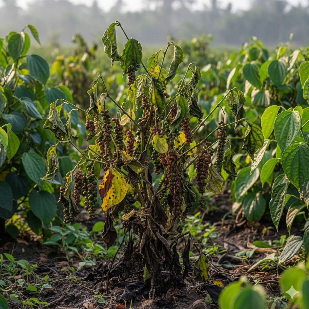 കുരുമുളക് കൊടികൾ പെട്ടെന്ന് ഉണങ്ങി നശിക്കുന്നുണ്ടോ? ദ്രുതവാട്ടം (Rapid Wilt) – പ്രതിരോധിക്കാം! 🌱